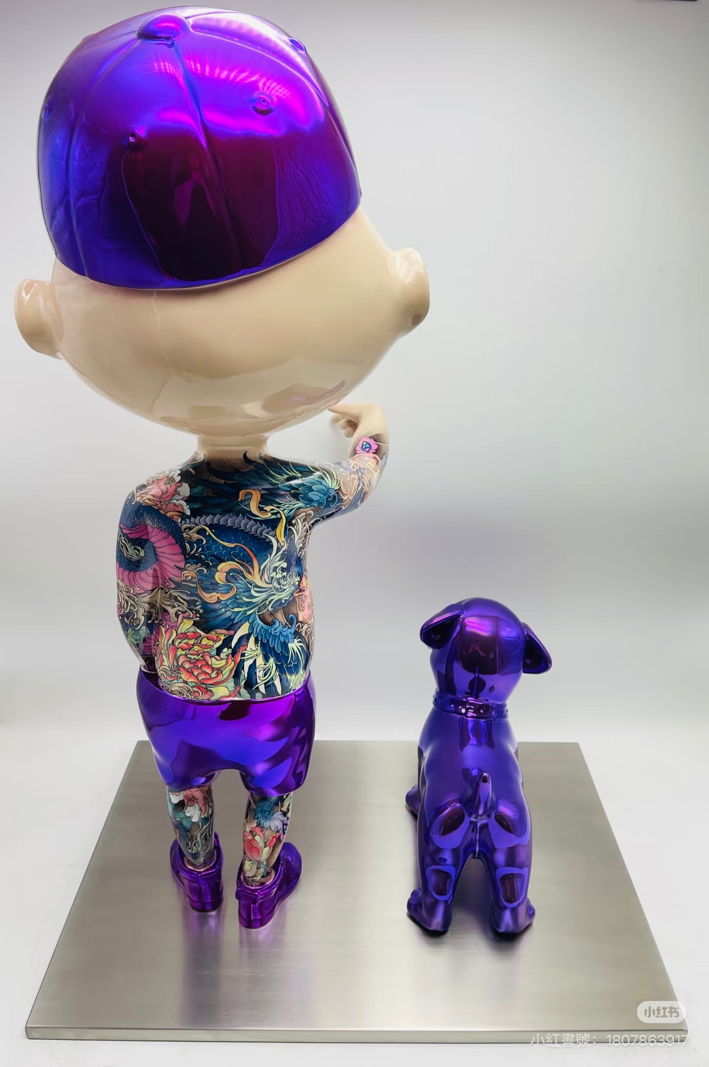 小發的尾巴微微捲起,如風的笑意;男孩的鞋帶散落在瓦片間,記錄著日常裡不經意的柔軟。