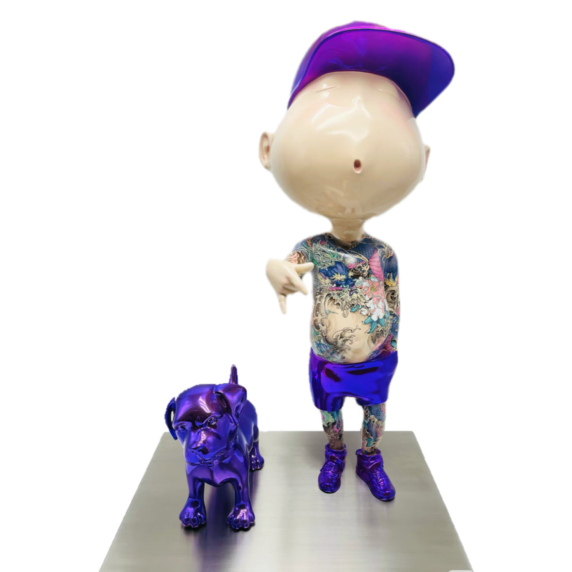 男孩手臂上稚氣的塗鴉,與小發毛絨絨的斑點彼此呼應;他們背靠背坐在黃昏的屋頂上——一個仰望雲朵的流動,一個嗅聞風的氣息。